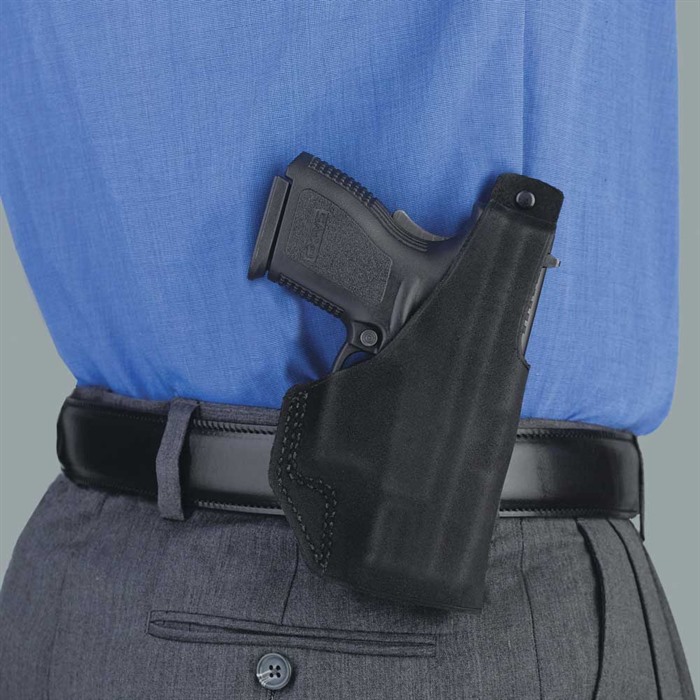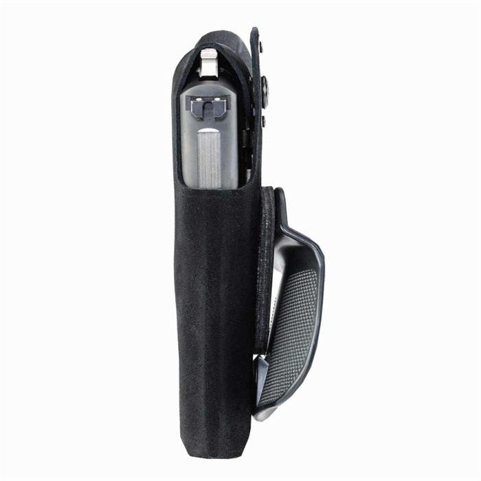 - Desliza cuidadosamente el arma de fuego en la funda hasta que esté completamente asentada.
