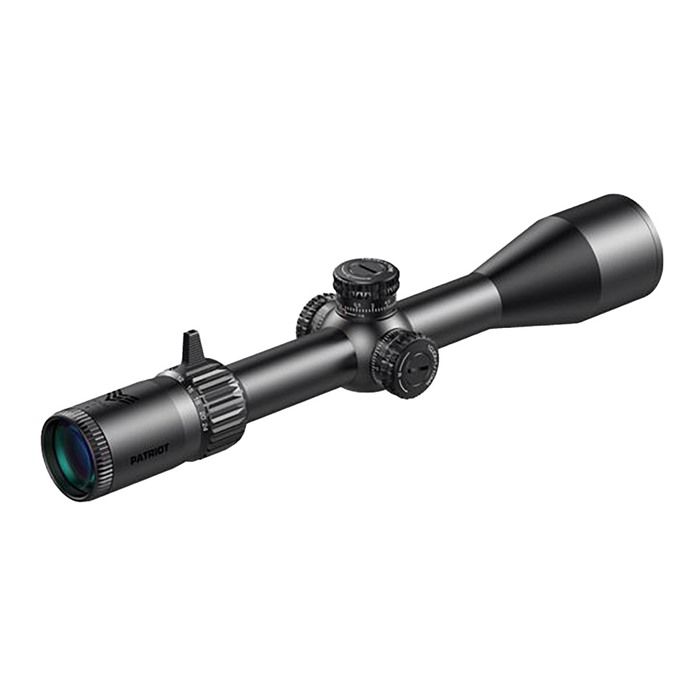 The Patriot delivers the clarity, ease of use, and durability your precision rifle deserves. The optimized internal design maximizes eye box and provides a flat, clear sight picture even at high magnifications. Choose from the included low- or high-profile Magnification Throw Fins to make instant field of view changes. The Sharpshooter FFP etched reticles are designed for accurate ranging and holdovers out to long range. Zero-resettable target turrets feature audible and tactile clicks. Choose between Sharpshooter MOA with 0.25 MOA per click adjustments, or Sharpshooter MRAD with .01 MRAD per click adjustments. The Patriot delivers worry-free use in hunting, tactical, or competition scenarios. Glass etched first focal plane reticles Zero resettable tactical turrets Adjustable parallax from 20 yards to infinity 90 MOA/26 MIL or total internal adjustment Includes short and tall magnification throw fins, flip up lens caps, scope cloth, and 3" sunshade.
