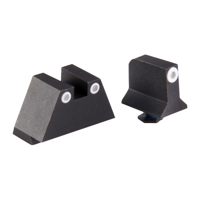 Night Fision’s Perfect Dot night sights for Glock® pistols offer a revolutionary new design that with brighter, more vivid, aiming dots. Like all night sights, Perfect Dots use self-illuminating Tritium to get the "always on" glow that makes them so effective. The difference is PDs have 30% more Tritium, so they are unusually bright. The Tritium insert isn’t surrounded by a painted-on ring, but rather one made of a daylight fluorescing material that produces optimum visibility in daylight. The result is what the Night Fision folks have dubbed the "Perfect Dot". The Perfect Dot provides maximum visibility in both nighttime AND daylight conditions, so when the pressure is on, you’ll locate your sights more quickly and get them on target - fast. A new mounting system holds the Tritium vial more securely to protect it from the ravages of unexpected knocks and dings. Front sight is brighter than rear, encouraging instinctive "Front Sight Focus" to keep your eyes on the target Rugged machined 4140 steel housings Matte black Nitride finish - excellent wear- and corrosion-resistance Variety of front dot colors & rear notch configurations to choose from (see below) Suppressor Height sights also available Sold as front/rear pairs only We are offering Perfect Dot sights to fit standard (G17-size) / compact frame (G26-size) Glock pistols in the factory heights, as well as Suppressor Height sights for use on Glocks fitted with sound suppressors. A separate models is specifically for the Glock 42 / 43. Other options: Square or U-shaped rear notch, choice of White, Orange, or Yellow outline around front sight. Rear sight options: plain Black (no inserts), Tritium dots (Clear) on either side of notch, or Tritium dots enhanced with White outline. Read the listings below carefully before ordering. With so many options available, you can fit your Glock with a night sight configuration that’s perfect for you. Another reason why they’re called "Perfect Dot" sights!
