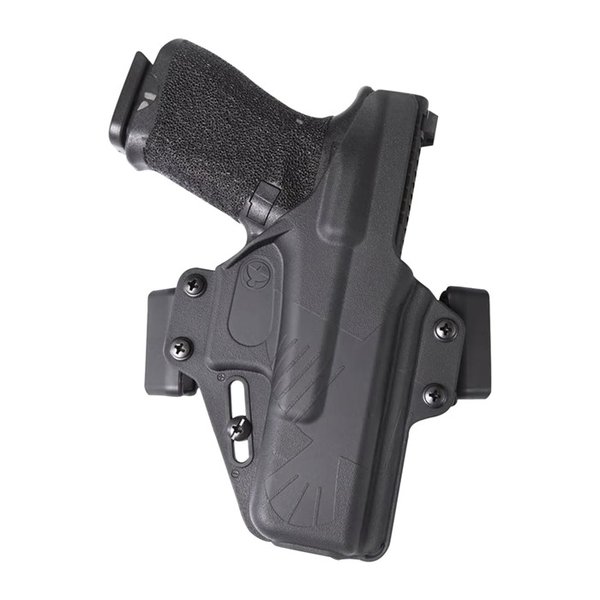 The Raven Concealment Systems Perun is their flagship outside-the-waistband (OWB) holster. It is the result of blending the best features of two of our most popular holsters, the Eidolon and the Phantom, to create a highly refined, exceptionally concealable holster. The Perun is designed to be the best modular OWB “pancake” style holster on the market. It has a body-hugging design that rides high for maximum concealment. The body of the holster is only slightly larger than the pistol contained in it. This small size aids in concealment while also making the holster more comfortable while seated in a vehicle. The body-hugging curvature of this holster is accomplished using modular belt loops. Each holster includes three pair of 1.5” belt loops (LH 10 degree cant, RH 10 degree cant, and ambi 0 degree cant), which allow the end-user to configure the ambidextrous holster body for left-handed or right-handed use, with either a 0-degree or 10-degree cant. Retention in the Perun is crisp, defined, and consistent, thanks to innovative design features inside the holster body. The unique retention slider makes adjusting retention as simple as turning up the volume on your stereo. And unlike other holsters that use the traditional “screw through a rubber grommet” style of retention, the Perun’s retention will not back off after repeated drawing and re-holstering. The Perun is compatible with most slide-mounted red-dot optics (like the Aimpoint T-1, Trijicon RMR, etc.) and accommodates suppressor-height front sights up to .350” tall. It is also fully compatible with the RCS Balor optic mount. The Glock Perun is compatible with generation 3-5 Glock pistols. The Perun is compatible with all small frame 9mm, .40S&W, and .357sig Glocks. Example, The Glock 17 Perun will fit the corresponding standard full sized pistols such as the .40 G22 and .357 G31. The Glock 19 Perun will fit the corresponding compact sized pistols such as the .40 G23 and .357 G32 Raven Concealment Systems also has Surefire X300U A/B and Streamlight TLR-1HL light compatible Perun LC models available for Glocks. Both the Glock Perun LC for Surefire X300U A/B, and the Glock Perun LC for Streamlight TLR-1HL holsters are compatible with generation 3-5 Glock 9mm/.40S&W/.357 Glock pistols (up to Glock 34/35 length slide) with the weapon light attached. For example, this holster will accommodate a Glock 19, Glock 17, or Glock 34 with the weapon light mounted on it. The muzzle-end of the holster is rounded for comfort, yet has an opening sufficient to accommodate most common after-market extended and threaded barrels (with thread protectors). The opening at the muzzle is also specifically designed to allow foreign objects (like spent casings) to drop out the bottom so that nothing can block your pistol from being safely re-holstered. The ambidextrous holster body has both inboard and outboard full-height body shields. These body shields offer some protection for your pistol from sweat, as well as protecting your skin and cover garments (especially the thin material used for linings in sport coats and suit jackets) from being abraded by the serrations on the rear of the slide. They also enhance safety by helping keep cover garments and other foreign objects from falling into the mouth of the holster while you have your pistol drawn, and aid in proper, safe muzzle orientation during re-holstering. The holster is injection molded from a proprietary, extremely high-strength polymer blend that is significantly more durable than Kydex or Boltaron. Like all RCS products, it is made in the USA, and is backed by our lifetime warranty.