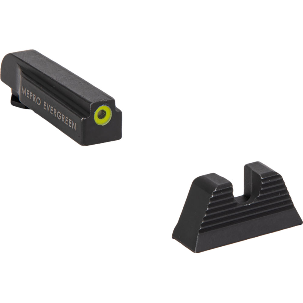 Meprolight también ofrece modelos de pistola selectivos con la mira frontal LED super brillante Mepro Evergreen™, que solo incluye la mira trasera en forma de U (no iluminada), lo que ha demostrado un aumento dramático en la probabilidad de aciertos de los usuarios.