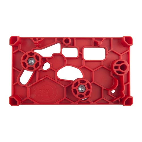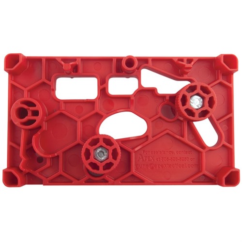 Los bosses móviles son fácilmente ajustables para posicionar los marcos de manera rápida y sencilla. Las paredes elevadas a cada lado del bloque posicionan la trigger bar dentro del gatillo, facilitando el intercambio del gatillo. El logo de Apex y la información de contacto están grabados directamente en el cuerpo del bloque para fácil identificación y acceso al personal de soporte técnico de Apex.