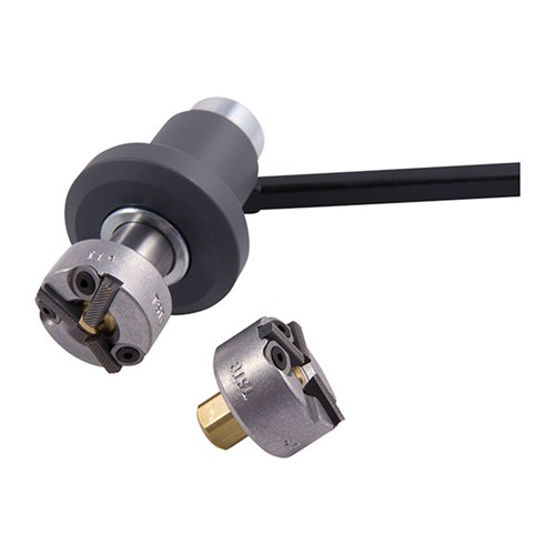 SPECS: Facing Cutters - Steel, carbide inserts. Chamfer Cutter – Steel. 1.25” (32mm) diameter. Pilots - Steel, 8¾” (22.2cm) overall length. Kits include manual handle, 0° facing cutter,11° facing cutter, outside chamfer cutter, (2 or 5) pilots, 1⁄8" pilot wrench, 5⁄64" allen wrench, setup gauge, power driver, adapter, instructions, and storage case. 2-Pilot Kit - .22 and .30 caliber pilots. 5-Pilot Kit - .22, .30, 6mm, 7mm, and .338 caliber pilots.