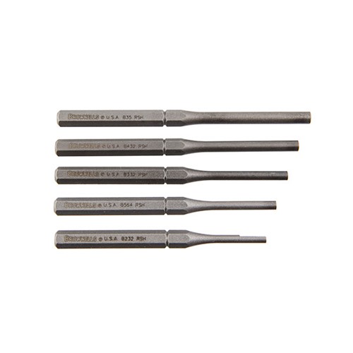 PREMIUM ROLL PIN HOLDERS The Brownells Premium Roll Pin Holders are precision-engineered tools crafted to securely hold roll pins, ensuring accurate alignment during firearm assembly and maintenance. These tools are designed to simplify roll pin installation and reduce the risk of damaging the pins or surrounding components. Description and Features: Accurate Drilling: Each holder is precisely drilled to securely grip tiny roll pins, making installation and alignment effortless. Specialized Notching: The 1/16" holder is specifically notched to clear M16/AR-15 rear sights, ensuring proper fit and easy access. The 3.5mm holder is ideal for retaining the breech block pin on Sig handguns, while the other sizes cater to a variety of roll pin tasks with precision. High-Quality Materials: Constructed from 5/16" hex high carbon 5160 steel and Bainite heat-treated for exceptional strength and durability. User-Friendly Design: A single groove on the grip section enhances handling, while laser-marked sizes ensure quick identification and improved efficiency. Available Sizes: The Premium Roll Pin Holders are available individually or as a comprehensive 5-piece set, accommodating common pin sizes encountered in firearms: 1/16" (1.6mm) 5/64" (2.0mm) 3/32" (2.4mm) 1/8" (3.2mm) 3.5mm (0.138") Specifications: Material: High carbon 5160 steel Heat Treatment: Bainite process for enhanced durability Handle Design: Hexagonal with a single groove for better grip Identification: Laser-marked for easy size reference Customer Insights: Our customers report that the Brownells Premium Roll Pin Holders are indispensable tools for firearms assembly and maintenance. The precise design allows for easy and accurate roll pin installation while preventing damage to pins and firearm surfaces. Many Customers highlight the specialized 1/16" holder for AR-15 rear sights and the 3.5mm holder for Sig breech block pins as standout features. Incorporating the Brownells Premium Roll Pin Holders into your gunsmithing toolkit ensures reliable and damage-free roll pin installation, enhancing both the efficiency and quality of your firearm maintenance projects.