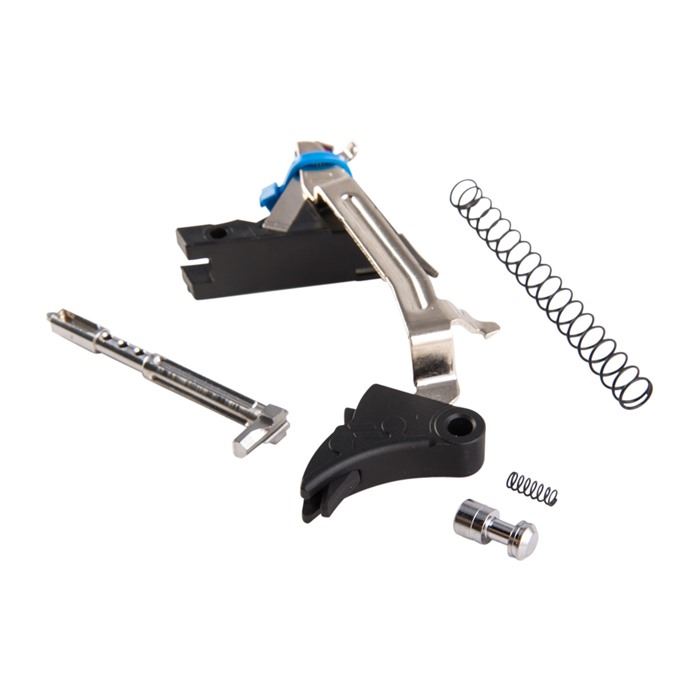 Zev Technologies Pro Ultimate Trigger Kit for Glock® Gen 1-3 is a drop-in overhaul that gives your pistol the performance benefits of a custom trigger job, but without impairing the reliability of the factory safeties. Zev starts with their own trigger, trigger bar, trigger block, ejector, connector, trigger spring, a lightweight stainless steel firing pin, plus safety plunger and spring to refine the trigger pull. They also include a reduced-power striker spring to produce a lighter-feeling trigger for competition, and the factory-weight striker spring for daily carry and duty use. Next Zev adds a skeletonized stainless steel striker with reduced mass and highly polished surface to speed lock time and deliver an even lighter, smoother perceived trigger pull, plus ultra-fast reset so you’re ready for follow-up shots. Finally, the wide trigger pad and safety to ensure you get a good purchase on the trigger, buts the extended face reduces fatigue on your finger, especially during extended range times. All engagement surfaces are polished to a mirror-like finish to reduce friction Ergonomically correct trigger pad Mil-spec hard-anodized aluminum construction The Zev Technologies Pro Ultimate Trigger Kit for Glock® Gen 1-3 is purpose-built to give you the best possible trigger, and make those precision shots with ease.