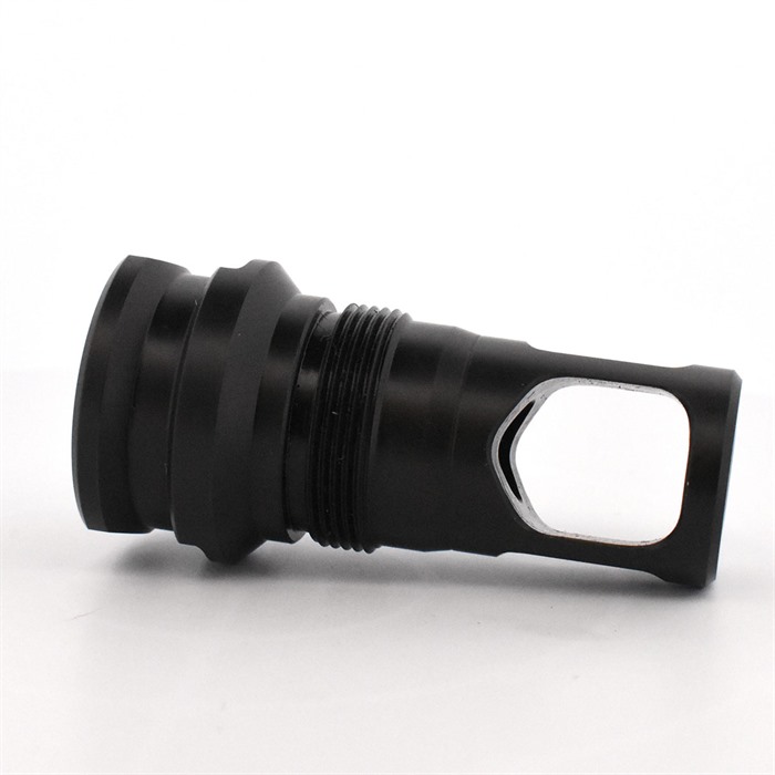 Aprieta el dispositivo de boca a aproximadamente 30 ft lbs. Asegúrate de que el dispositivo de boca esté cuadrado contra el hombro. Al colocar el silenciador en el dispositivo de boca, asegúrate de que las roscas y los conos estén limpios. Aprieta el supresor a 10 ft lbs. Asegúrate de la alineación. ¡Disfruta!