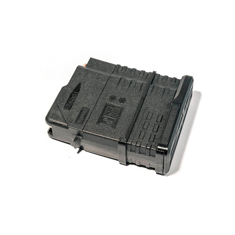 Este cargador está diseñado para 10 rondas. Además de su superficie rugosa, las paredes exteriores están cubiertas con un patrón de tracción que evita que se resbale de tus manos. No tendrás problemas para desarmarlo; con el botón de liberación hundido en la tapa trasera, puedes quitarlo fácilmente y acceder para limpiarlo y mantenerlo.