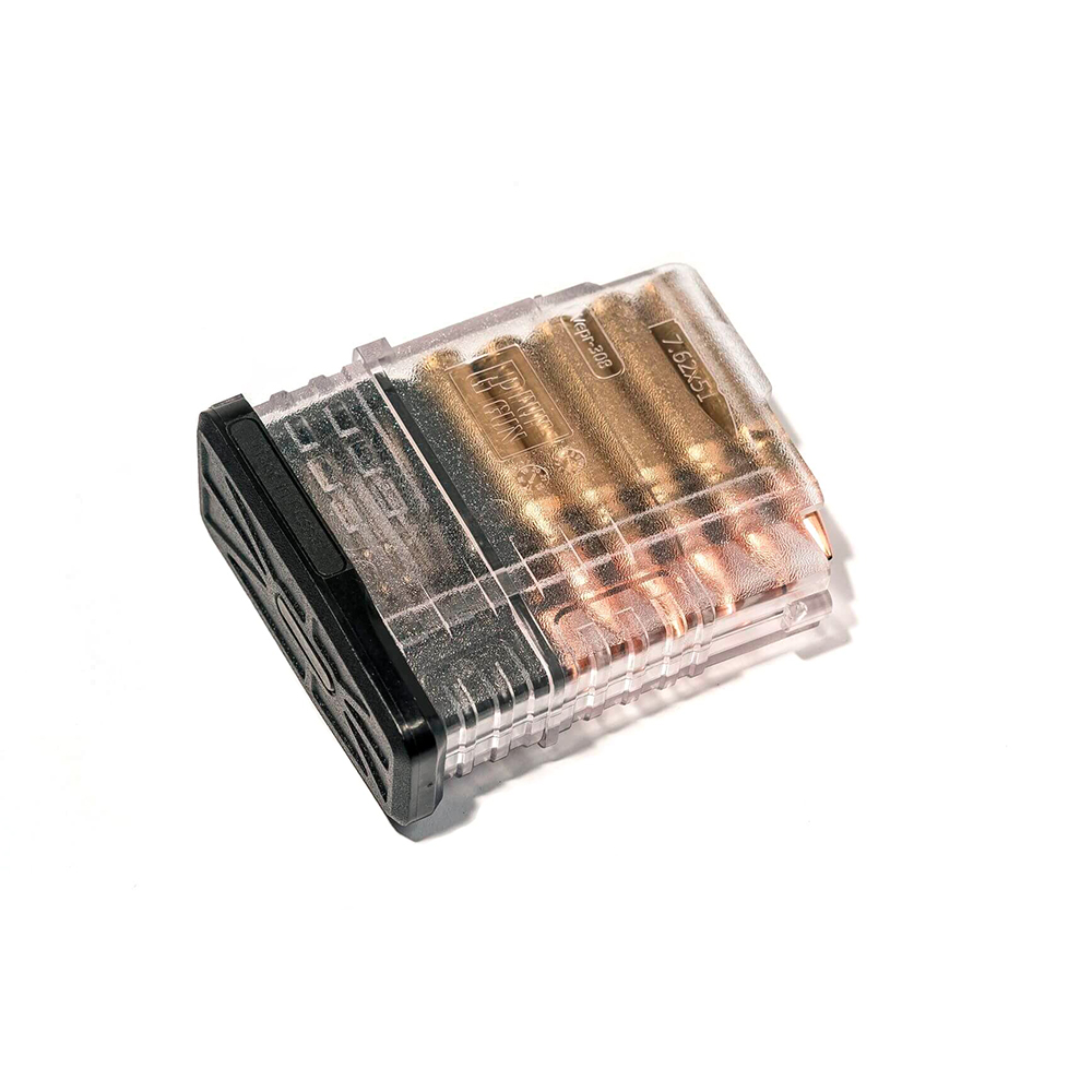 Su diseño translúcido te permite controlar la cantidad de cartuchos restantes, lo que es una ventaja en cualquier situación de tiro.