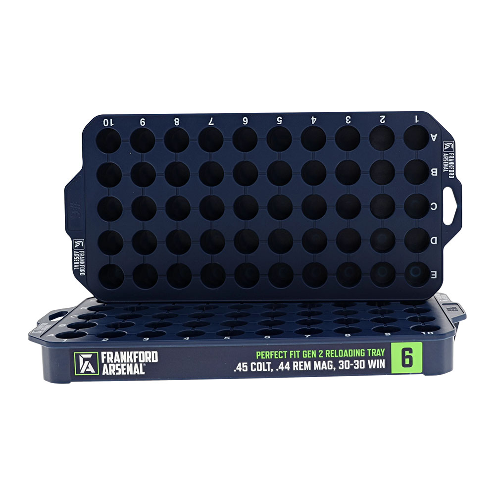 Las bandejas de recarga Perfect Fit Gen 2 de Frankford Arsenal están diseñadas específicamente para proporcionar un ajuste preciso para calibres individuales o una familia de calibres. Estas bandejas son una herramienta esencial para los recargadores, permitiéndote maximizar la eficiencia y mantenerte organizado.