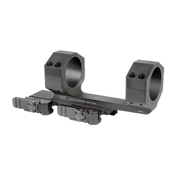 The Midwest Industries 34mm QD Scope Mount w/ 1.5” Offset is the smoothest functioning QD lever on the market. It features Superior clamping that will not damage or coin the rail surface. It is Extremely smooth in operation with a multi-facetted adjustment nut to get the exact tension required by the operator. Fully adjustable with no tools required, can be adjusted to fit rails not machined to mil-spec tolerances. Weighs only 8.7 oz. Precision machined for optimum return to zero performance and reliability Hard coat anodized 6061 aluminum for a lifetime of service Patented QD lever by Elite Defense 100% made in the U.SA. with MI Lifetime Warranty Technical Specs Works with scopes with up to a 56mm objective Weight: 8.7 ounces Overall length: 5.875 inches Width of rings: .850 inches Distance between rings: 2.800 inches Offset from base to first ring: 1.400 inches Distance from top of rail to center line of ring: 1.550 inches
