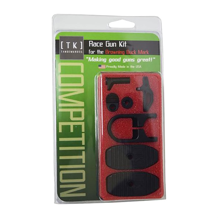 Get competition ready and turn your Browning Buck Mark pistol into a race gun with the TANDEMKROSS Race Gun Kit. This combo features our best Browning Buck Mark upgrades in one kit - saving you money compared to buying each part separately and giving you the ultimate Buck Mark upgrades in one, simple package. This combo includes: 1 x "Victory" Trigger for Browning Buck Mark 1 x "halo" Charging Ring for Browning Buck Mark 1 x "Titan" Extended Magazine Release 1 x "Buck PRO" Magazine Base Pads (2-pack) Improve your trigger pull with the flat-faced, textured "Victory" Trigger for Browning Buck Mark. The flat face ensures consistent trigger placement for better accuracy, and the trigger is fully adjustable for post-travel for a custom feel. The "halo" Charging Ring for Browning Buck Mark offers a unique pull ring design, making it easy for any user to quickly and successfully charge the gun or clear a jam - ideal for a competitive shooter or any user with small or weak hands. Magazine changes will be easier with the addition of the "Titan" Extended Magazine Release and "BuckPRO" Magazine Base Pads. The "Titan" magazine release is taller and wider than the factory, and is positionable by the user for a custom fit. The "Titan"comes with two textured button styles that offer a no-slip grip in any condition. The "BuckPRO" magazine bumpers offer an extended base, making it easier and faster to bump magazines into place and boosting the consistency of positive magazine seatings - ideal for competition! Get all of these Buck Mark upgrades in one simple kit and be competition ready! The kit is available with black or gray extended magazine release and trigger. Please note: the "halo" Charging Handle and "BuckPRO" Base Pads are only available in black.