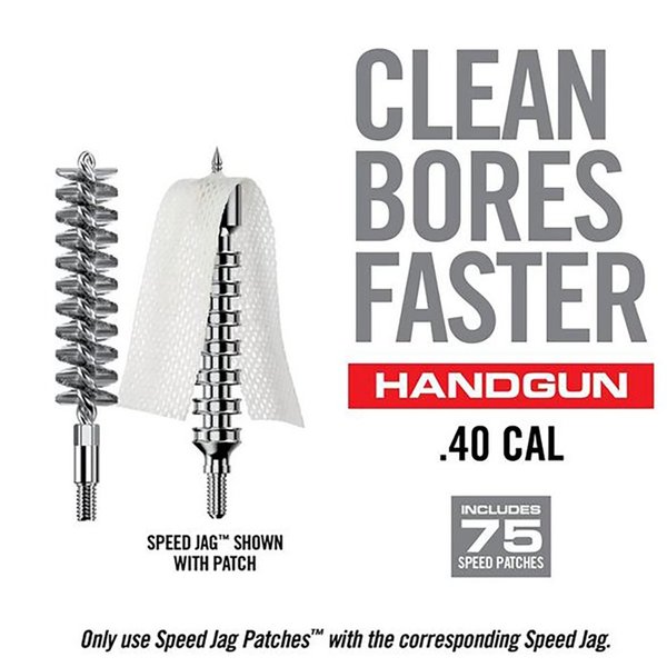 El sistema de Speed Jag y parches permite introducir más material de parche en el cañón, eliminando acumulaciones y maximizando la efectividad de cada pasada. Los Speed Patches están hechos de un material sintético que ha demostrado ser superior en absorbencia en comparación con el algodón. Este material también es más efectivo para recoger y atrapar la suciedad.