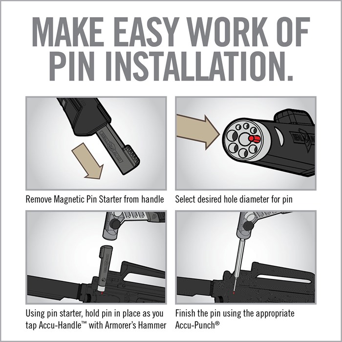 El ARMORER'S MASTER HAMMER es perfecto para clavar pasadores, ajustar piezas y completar ensamblajes de armas de fuego sin dañar componentes sensibles. Su variedad de cabezas permite flexibilidad en una amplia gama de escenarios de gunsmithing.