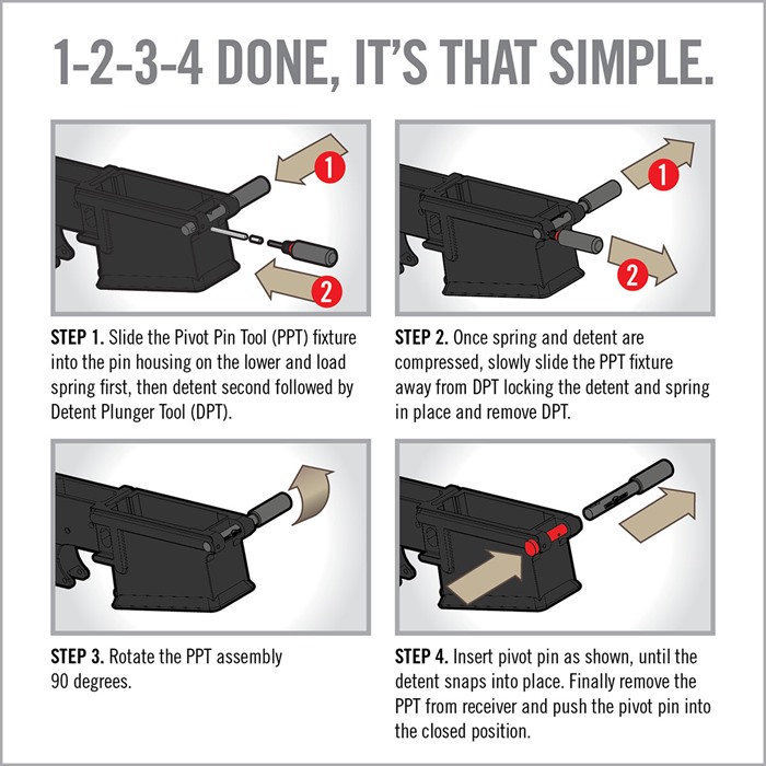 ¿Cómo puede una tarea tan pequeña causar tanta frustración? La Pivot Pin Tool para AR10 te da una tercera mano para convertir la tarea engorrosa de lanzar pines en una brisa rápida. ¡1-2-3-4 y listo, así de simple!