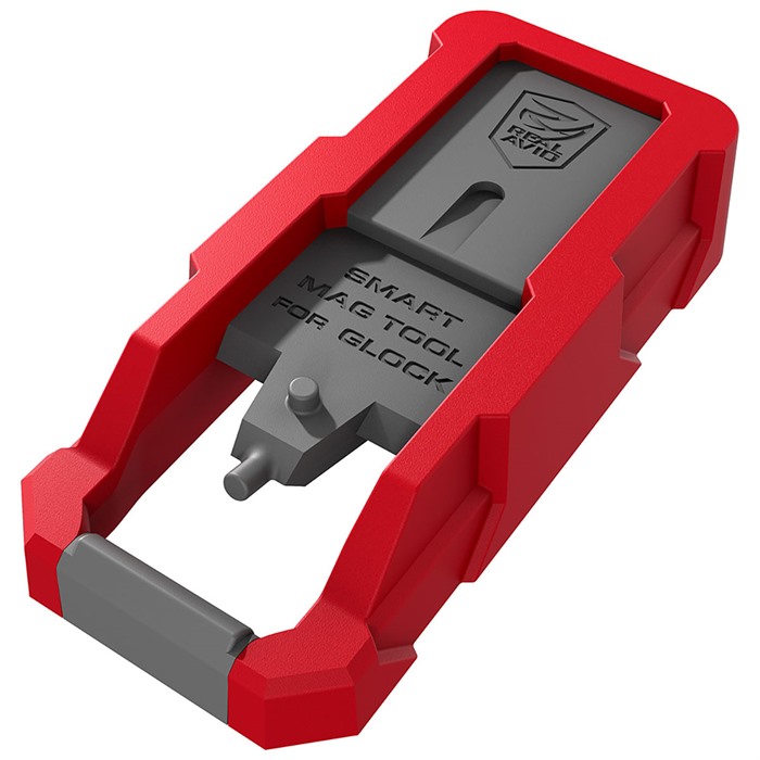 Change base plates or disassemble Glock OEM magazines for safe and easy cleaning. No fumbling, no need for an extra hand, no out of control springs launching across the room. The Smart Mag Tool for Glock simplifies the process by allowing you to break open the base plate, and slide it off while retaining the spring in a secure position. To assemble, just reverse the operation. A once clumsy task has been rendered easy. It's called the Smart Mag Tool. Maybe it should be called the Easy Mag Tool.Features: - Easily change base plates or disassemble Glock OEM magazines for safe and easy cleaning - Aids in both the disassembly and reassembly of the magazine - Captures the spring on disassembly and prevents it from launching across the room - Unload the magazine with quick unload feature on the back - Rubber over molded base prevents tool from slipping and protects your table from scratching - Does not work on extended base plates such as the Glock + base plate found on some high capacity magazines.