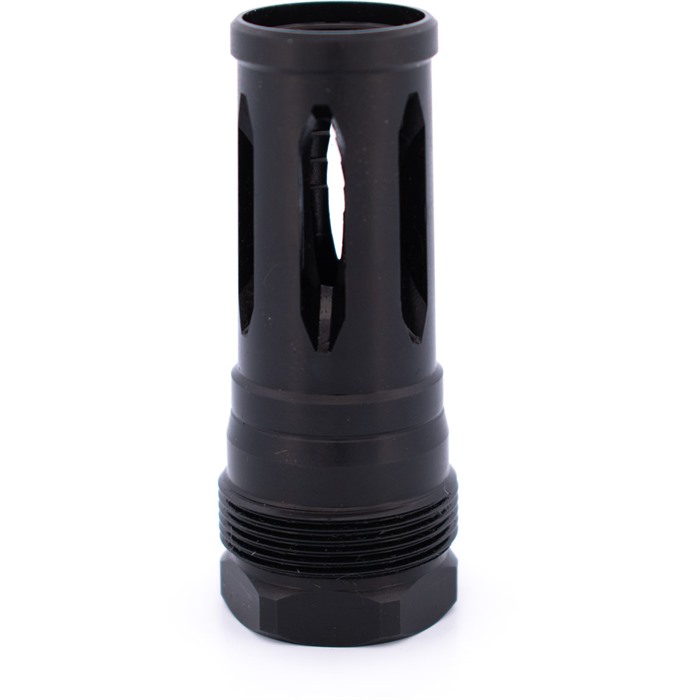 Advertencia: Usar en un Q can anula tu garantía. Asegúrate de torquear el dispositivo de boca a aproximadamente 30 ft lbs. Verifica que el dispositivo de boca esté cuadrado contra el hombro. Al colocar el silenciador en el dispositivo de boca, asegúrate de que las roscas y los cónicos estén limpios. Torquea el supresor a 10 ft lbs. Asegura la alineación. ¡Disfruta!