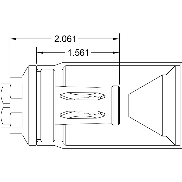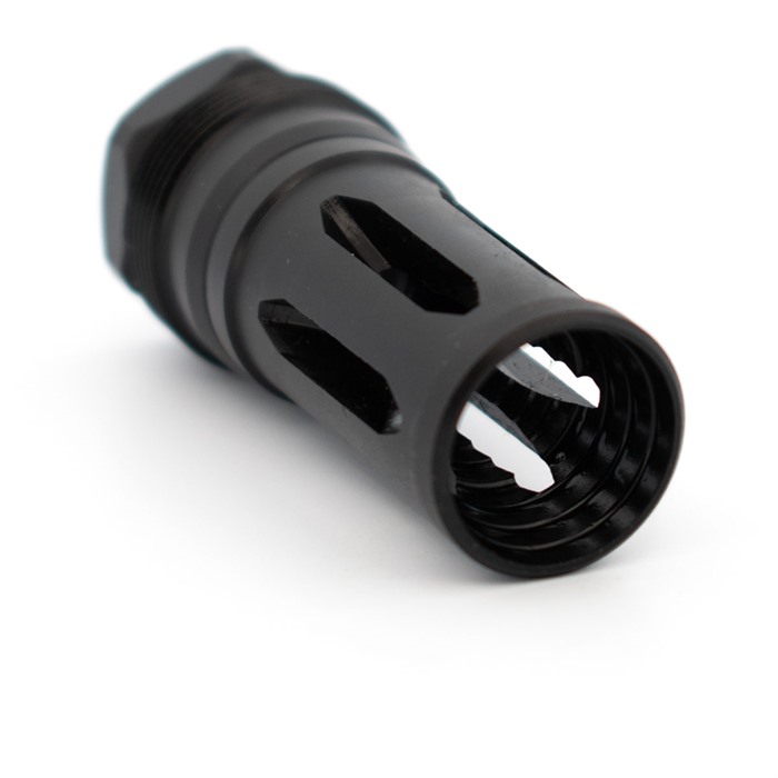 Aprieta el dispositivo de boca a aproximadamente 30 ft lbs. Asegúrate de que el dispositivo de boca esté cuadrado contra el hombro. Al colocar el silenciador en el dispositivo de boca, asegúrate de que las roscas y los cónicos estén limpios. Aprieta el supresor a 10 ft lbs. Asegúrate de la alineación. ¡Disfruta!