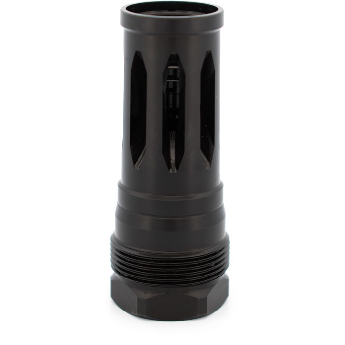 Los R2C FLASH HIDERS son compatibles con montajes tipo Plan B. Siempre utiliza una varilla de alineación para asegurarte de que todo el sistema esté configurado correctamente. Asegúrate de que todas las superficies estén limpias y que el dispositivo de boca esté ajustado y fijado al cañón con Rockset. Ten en cuenta que usarlo en un silenciador Q anula tu garantía. Asegura el dispositivo de boca a aproximadamente 30 ft lbs y verifica que esté cuadrado contra el hombro.