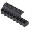 Rugged and lightweight, aluminum shell holders put extra 12 gauge shotshells on the left side of the receiver for fast tactical reloads. Shells are held in place with a unique, internal Santoprene™ elastomer rib that securely retains even heavy slug shells during vigorous movement or heavy recoil. Available in sidemount (SM) or Picatinny rail (PR) configurations. All necessary installation hardware, tools, and instructions included. Remington Sidemount is available in 4-, 6-, and 8-round capacities and uses steel-on-steel, threaded adapters that replace the trigger group pins to anchor the shell holder securely to the receiver. Remington 870 shotguns require a shortened, tactical-style forend to accommodate 6- and 8-round sidemount units. Remington 1100/11-87 require minor forend alterations to fit the 8-round model. Remington Picatinny is a 6-round model that features an integral Picatinny rail for mounting sights, optics, or other accessories. Wraps around the top and mounts to both sides of the receiver using the same type of attaching system as the sidemount model. Fits Remington 1100/11-87 without modification; requires use of shorter than factory length forearm when used with Remington 870. Mossberg Sidemount is a 6-round unit that attaches in the same manner as the Remington Sidemount. Fits Mossberg 500/590. Mossberg 500 Sureshell Carrier attaches to top mount. Benelli Picatinny models include an integral Picatinny rail and mount to the top of factory drilled/tapped receivers. Available in 6-round for Benelli M1/M2 (requires drilling/tapping receiver for M1), 6- and 8-round for M4/M1014, and 4-round for Supernova shotguns. Mossberg 930 sidemount attaches to the left side of the receiver. Mossberg Picatinny is a 6-round model that features a top Picatinny rail and attaches the same as the Sidemount model. Versamax is a 6-round model that features a top Picatinny rail and attaches to the receiver.