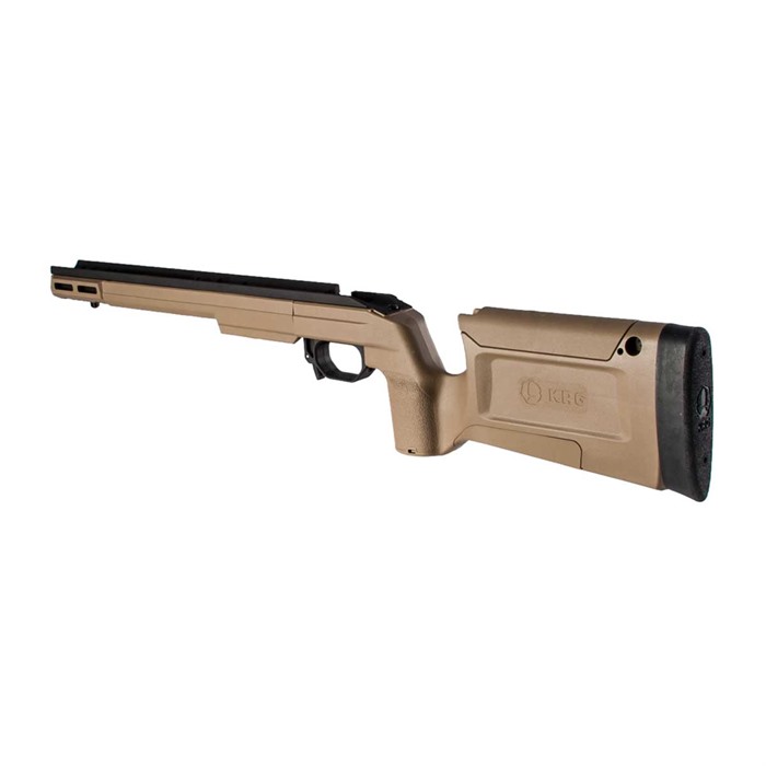 KINETIC RESEARCH GROUP BRAVO CHASSIS FOR REMINGTON 700 SHORT ACTION The Remington 700 is one of the most customized rifles on the market, and finding the perfect aftermarket component can be a never-ending search. However, the stock is covered, thanks to the Kinetic Research Group Remington 700 Bravo Chassis. The Kinetic Research Group Remington 700 Bravo Chassis features a backbone made from machined aluminum that stretches along the entire length of the stock, giving it rigidity that will ensure the same performance usually found with custom bedding jobs. The rest of the stock is made from reinforced polymer for durability. FEATURES Fits all Remington 700 short actions Available in black and flat dark earth colors Weight: 2.9 pounds M-LOK compatible The Kinetic Research Group Remington 700 Bravo Chassis also features an adjustable cheek riser and length of pull, a built-in thumb shelf, quick-detach sling-swivel mounting points, bipod-attachment stud and is compatible with all AICS-pattern magazines.