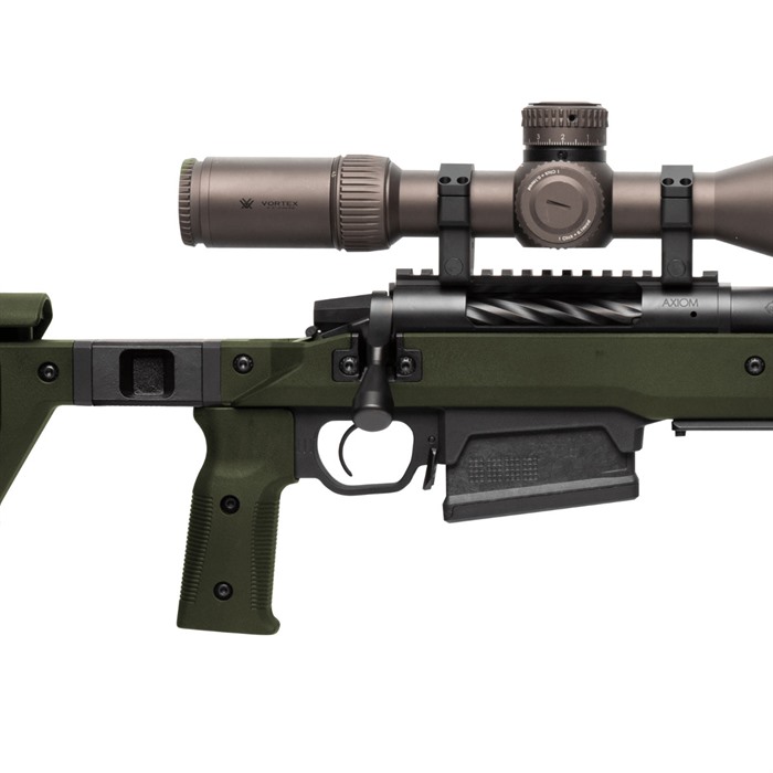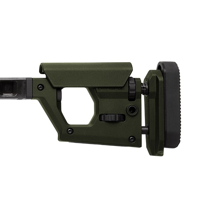 The Magpul Pro 700L Rifle Chassis is an uncompromising, full featured precision rifle chassis for long action Remington 700 and Remington 700-footprint rifles. The Pro 700L combines innovative engineering, precision machining, Mil-Spec quality finishes, and an extensive list of purposeful design features with complete adjustability to provide demanding end users with the most comprehensive available precision rifle platform solution for true out of the box performance. Based on a full billet aluminum skeleton and clad in Magpul polymer for environmental comfort, noise mitigation, and ergonomics, the Pro 700L is also fully ambidextrous. Capable of fitting both right and left-handed actions with the simple swap of a bolt-cutout plate, and with a reversible cheek riser and reversible hinge on the folding version, “lefties” haven’t been “left out.” MAG1002 PRO 700L - FOLDING STOCK IS SUPPLIED WITH THE PRO FHA - FOLDING HINGE ADAPTER (MAG999) INSTALLED MAG1003 PRO 700L - FIXED STOCK IS SUPPLIED WITH THE PRO FSA - FIXED STOCK ADAPTER (MAG998) INSTALLED Type III hard anodized machined 6061-T6 billet aluminum V-bedding block, body, adjustment knobs and forend with high strength injection molded polymer body covers optimally placed for comfort and aesthetics Ambidextrous bedding block can be changed by swapping the QD sling swivel plate and bolt retainer inserts for left or right hand actions using a 1/8” hex wrench A Magpul Pro NVM – Night Vision Mount clip-on mounting rail solution is available Overall LOP adjustment range is 13.25” – 15.125” Butt-pad height can be adjusted up 1.33” and down .90” and is adjustable left or right for a total of 5 degrees Comb height adjustment has a 1" range with a secondary locking knob to eliminate movement in the cheek riser Cheek riser features a 3-position fore/aft adjustment of +.375", 0" and -.375" which can also be changed for left or right side usage using only a common hex wrench Injection molded polymer grip with 5 degree forward edge sweep and enlarged palm swell with 7 degree aft edge sweep for enhanced user comfort combined with a .75" fore/aft adjustment range using a common hex wrench. Additional grip option included with a more aggressive sweep and enlarged palm swell for the shooter that is more inclined to a less vertical grip interface (8 degree forward / 20 degree aft edge sweep) Durable cast steel rotation limited QD sling swivel mounts with Melonite finish fits up to 1.5” push button swivels M-LOK slots for accessory mounting on the forend (left-6/right-6/bottom-7) and the stock (bottom-2) Integrated AICS pattern magazine well of reinforced polymer construction optimized for PMAG® 5 AC™ L, Standard and PMAG® 5 AC™ L, Magnum - AICS Long Action magazines as well as most other AICS pattern long action magazines Large trigger guard allows for use with gloves and accepts most factory and aftermarket curved or flat triggers Low-profile, anti-snag ambidextrous magazine release is made of Melonite treated steel for wear and corrosion resistance Made in the U.S.A.