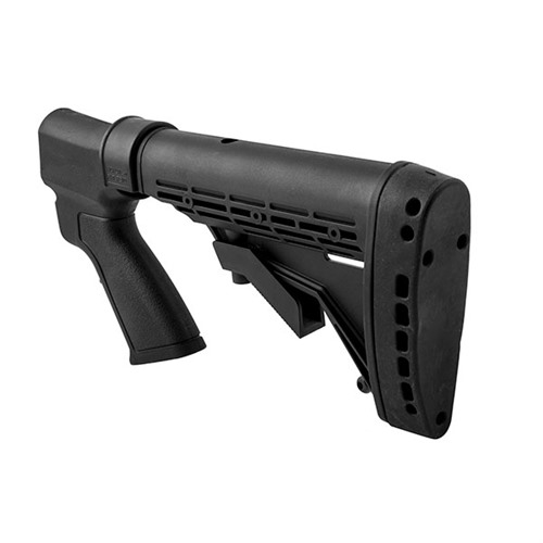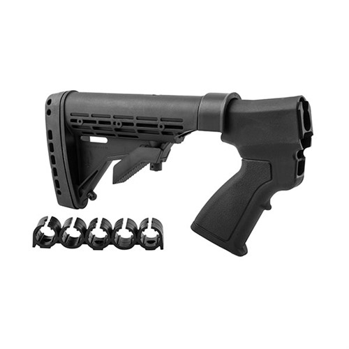 Easy-to-install kit turns an ordinary pump shotgun into an easy-to-control tactical/self-defense gun. Adjustable, six-position, M4-style buttstock has a generous rubber recoil pad and built-in spring-loaded recoil suppression system that reduces felt recoil 40-50%. Aids shooters of all sizes, skill levels, and body types to shoot more accurately, with faster follow-up shots. Ergonomic pistol grip has a non-slip surface to further enhance control. Includes sling swivel adapter and five-shot shell carrier that mounts on either side of stock. Drop-in installation: just unbolt factory buttstock and install the KickLite components with the included mounting hardware.