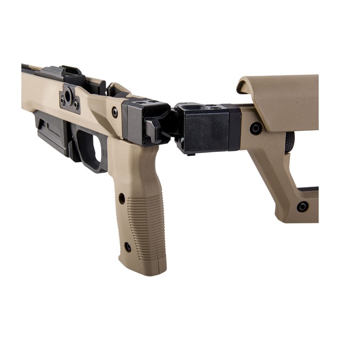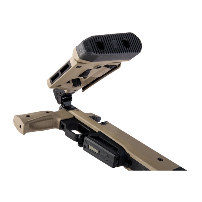 - Revista integrada: Incluye un magazine de patrón AICS hecho de polímero reforzado, optimizado para los magazines PMAG® 5 & PMAG® 10 7.62 AC™ y la mayoría de otros magazines de acción corta de patrón AICS.
