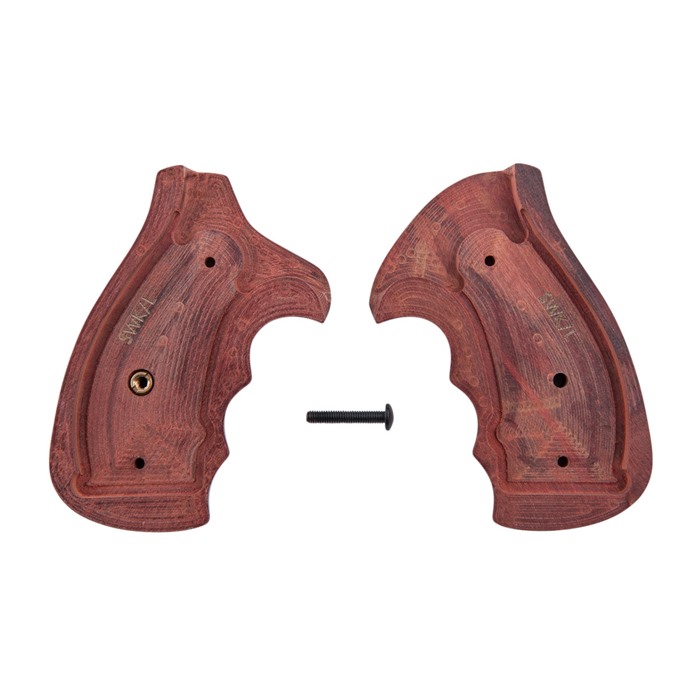 Las Pachmayr Renegade Wood Laminate Grips para los marcos S&W K y L no requieren ajuste y se fijan instantáneamente a tu revólver de marco mediano, brindándote características mejoradas con solo girar un tornillo.