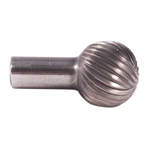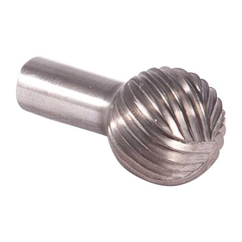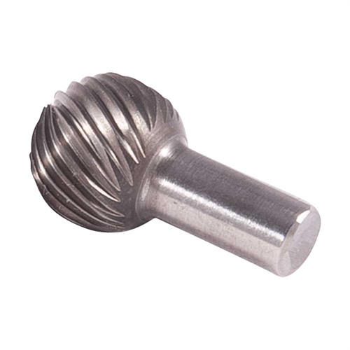 Las herramientas de desbarbado para revólver de Brownells utilizan acero de alta velocidad para eliminar las rebabas de los bordes exteriores del cono forzado, mejorando así la precisión. Este útil se utiliza en la garganta de la cámara, facilitando que los cartuchos entren con facilidad.