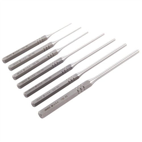 Los STEEL ROLL PIN PUNCHES de GRACE USA son un conjunto de 7 punzones de alta calidad, diseñados especialmente para armeros y entusiastas de las armas de fuego. Estos punzones son ideales para facilitar la extracción e instalación segura de los roll pins en diversas armas, garantizando eficiencia y preservación de la integridad del arma.