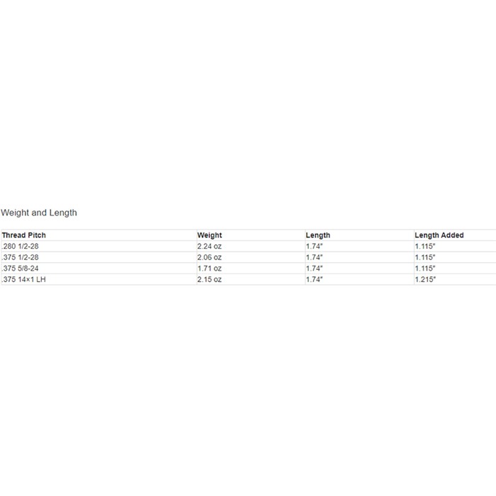 Torquea el dispositivo de boca a aproximadamente 30 ft lbs. Asegúrate de que el dispositivo de boca esté cuadrado contra el hombro. Al colocar el silenciador en el dispositivo de boca, asegúrate de que las roscas y los cónicos estén limpios. Torquea el supresor a 10 ft lbs. Asegúrate de la alineación. Disfruta.