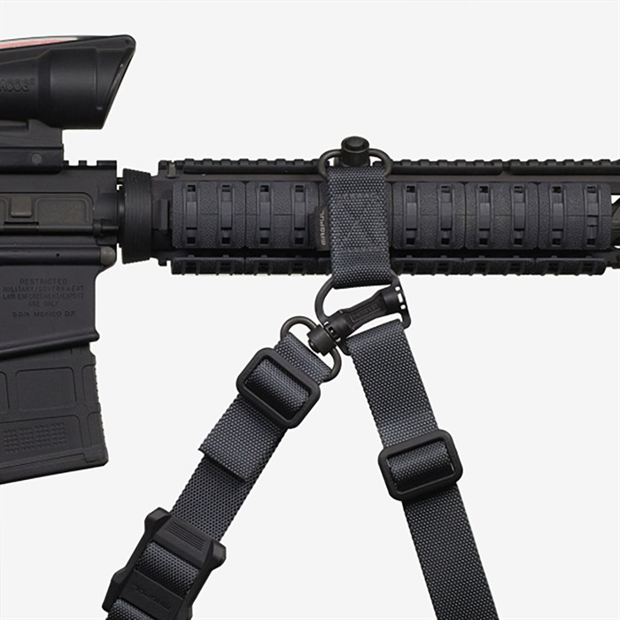 - Para desacoplar, presiona el mecanismo del botón de liberación y tira suavemente del sling lejos del punto de sujeción.