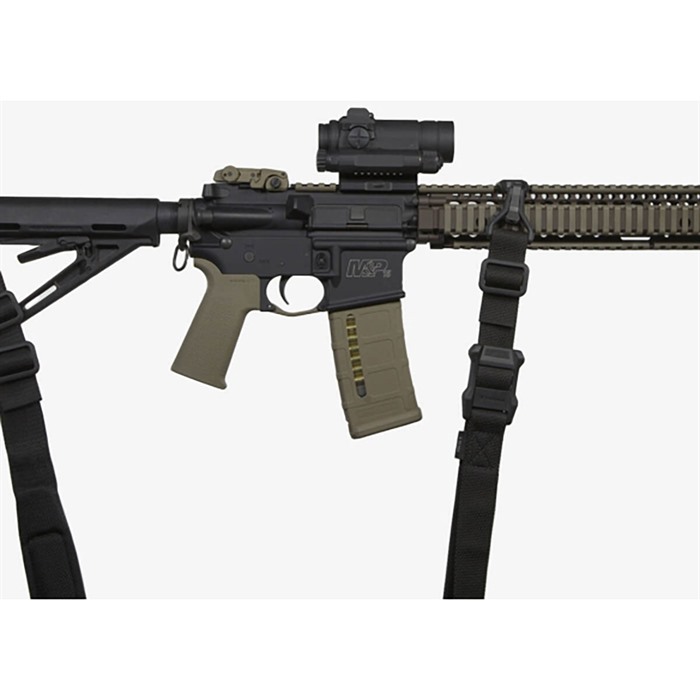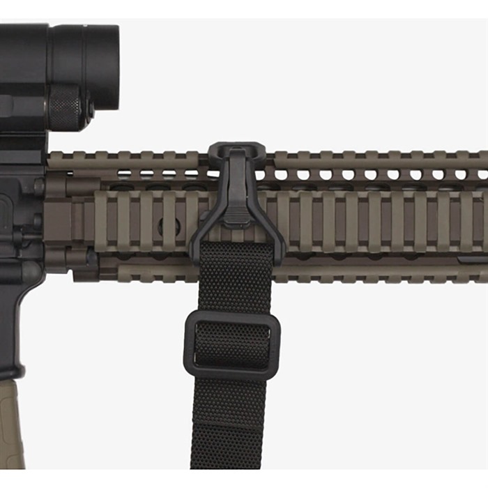Este bucle de sling de bajo perfil se sujeta a cualquier riel de handguard MIL-STD 1913 Picatinny o STANAG 4694, ofreciendo un punto de sujeción frontal seguro para el Magpul MS2 o un sling similar. Puedes instalarlo en el lado izquierdo o derecho del riel superior, o en los rieles laterales o inferiores para múltiples configuraciones alternativas de sling.