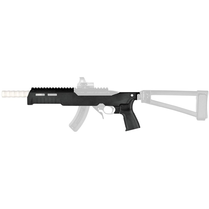 Designed in partnership with Unity Tactical™, the SB22 Fixed Kit is a lightweight, modular chassis for the Ruger® 22 Charger and its clones. Able to accept M1913-compatible braces and stocks, the SB22 Fixed Kit is the key component to the perfect pack gun. Note – the firearm, brace, and other accessories shown are not included. FEATURES Lightweight, polymer chassis with aluminum insert, Picatinny (M1913) rear, and integral, ambidextrous QD sling socket Accepts standard AR-15 pistol grips (Reptilia® CQG™ Grip included) Includes Picatinny (M1913) Bridge Mount and Flat Top Cover Proudly made in the USA KIT INCLUDES Polymer Chassis Reptilia® CQG™ Grip Picatinny (M1913) Bridge Mount Flat Top Cover SB22™ FIXED KIT SPECIFICATIONS FIT: Ruger® 22 Charger ™, Ruger 10/22®, and clones LENGTH: 11" or 15" COLOR: Black