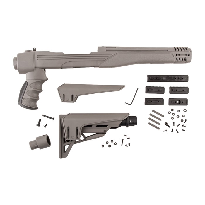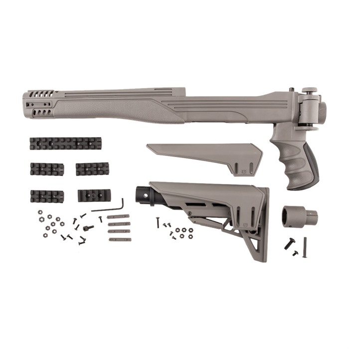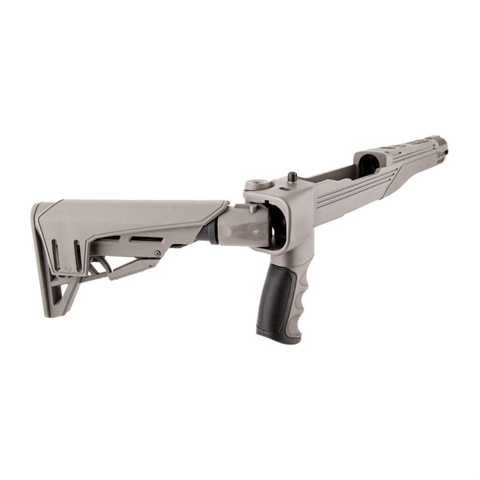 SPECS: DuPont Extreme Temperature Glass Reinforced Polymer, 6-position collapsible telescoping butt stock, Side folding stock, One 4-inch picatinny rail, Four 2-inch picatinny rails, Removable adjustable cheek rest, Non-slip removable rubber butt pad, Additional venting forend and top cover, Blank covers, Textured pistol grip, Three sling swivel studs, 6 degree tube drop adaptor for iron sights, For Ruger 10-22 rifles only, Lifetime manufacturer's warranty.