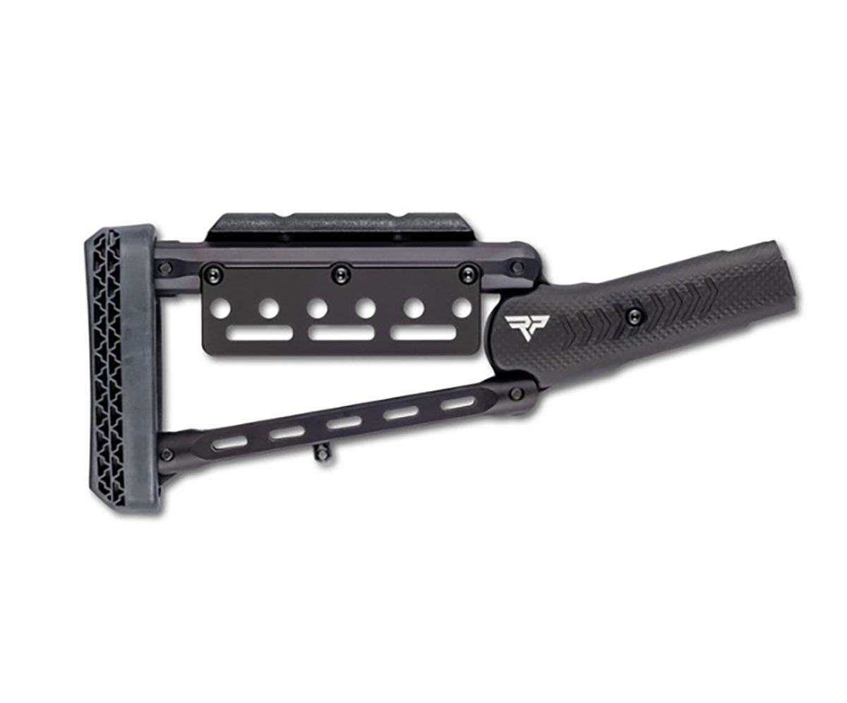 850068664221 The GForce Hugtek Lever Stock Black is a high-quality, lightweight, and durable stock option for GForce Huckleberry lever guns such as the LVR45, LVR357, LVR44, and LVR30. Made from anodized 6061 aluminum, it offers excellent durability while reducing weight to just 595 g (21 oz), making it significantly lighter than the standard wooden stock. Key Features: Material: 6061 aluminum, Type III anodized Weight: 595 g (21 oz), lighter than the factory wooden stock Length of Pull (LOP): Standard 12.5" (31.75 cm), shorter than the original stock. Additional 1/2" (1.27 cm) spacer available for extended LOP. Adjustable Cheek Height: Four pivot points for comfortable aiming with iron sights or mounted optics. AR-Style Buttplate: 6-position design with a Dead Blow recoil pad for optimal recoil reduction. M-LOK Accessory Panel: Includes two sling mount slots for added attachments. Adjustable Cheek Riser: Ensures proper alignment when using taller optics. Included in the package: 1 x Adjustable aluminum stock 1 x Cheek riser 1 x M-LOK sling panel 1 x RPP Dead Blow recoil pad 1 x Hex keySe recibirá del proveedor después de realizar el pedido. Plazo de entrega de aproximadamente 3-4 meses