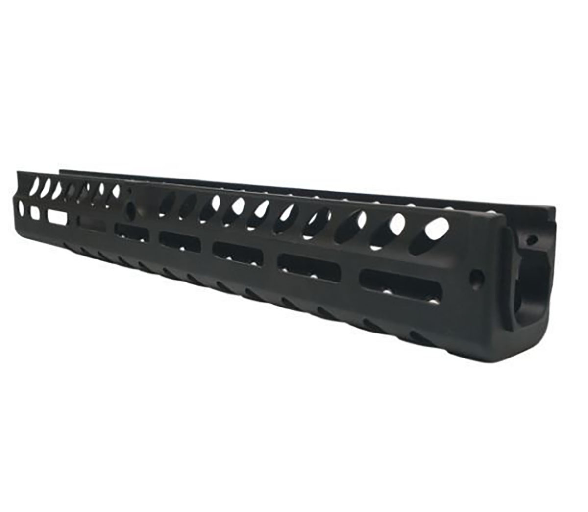 850068664498 Features: – M‑LOK and flush‑cup holes for sling swivels – 1 sling‑stud mounting point, 24 M‑LOK slots – 18 finger grooves per side for improved grip Technical Details: – Length: 28.5 cm (11") – Width: 3.2 cm (1.25") – Height: 3.8 cm (1.5") – Weight: 140 g (5 oz) Installation: The included barrel band and four mounting screws ensure a solid, secure fit and prevent lateral movement. Finish: Type III black anodizing for added durability. Included: – 9.25" M‑LOK aluminum handguard with sling stud – Barrel band and mounting kit with 4 screwsSe recibirá del proveedor después de realizar el pedido. Plazo de entrega de aproximadamente 3-4 meses
