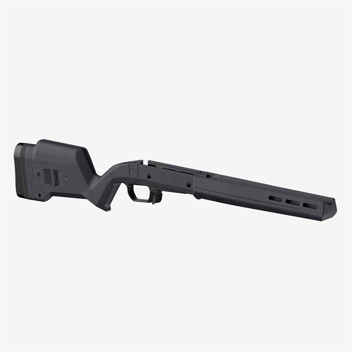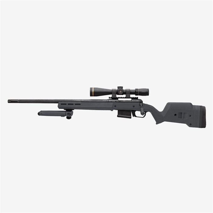 La culata Hunter 110 – Savage 110 Short Action es la última incorporación a la línea de productos de culatas Magpul. Diseñada con ergonomía mejorada, está disponible en versiones para acciones tanto diestros como zurdos, y cuenta con ocho ranuras M-LOK® para opciones de montaje. Además, tiene una longitud de tiro y altura de comb totalmente ajustables.
