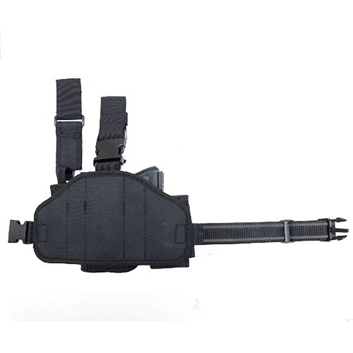 La correa ajustable para el muslo se adapta a la mayoría de las piernas, mientras que el sistema de liberación rápida para el cinturón permite una fácil remoción. Cada rig incluye un mag pouch adjunto con sistema MOLLE para mantener un cargador extra cerca.