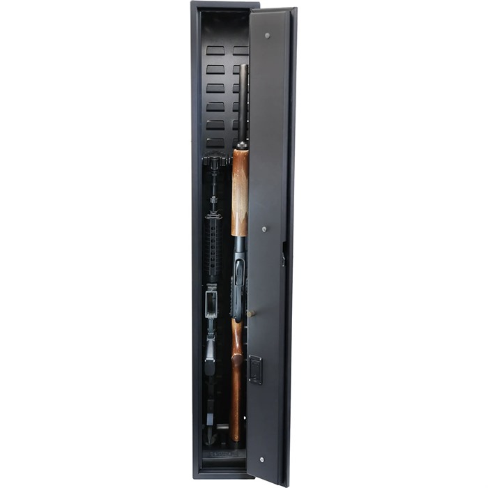 - Durabilidad de Grado Militar: Construida con acero de 14 calibres, un sistema de bloqueo de 3 puntos y una puerta con bisagra de piano de longitud completa para cumplir con los estándares de almacenamiento de armas pequeñas militares.