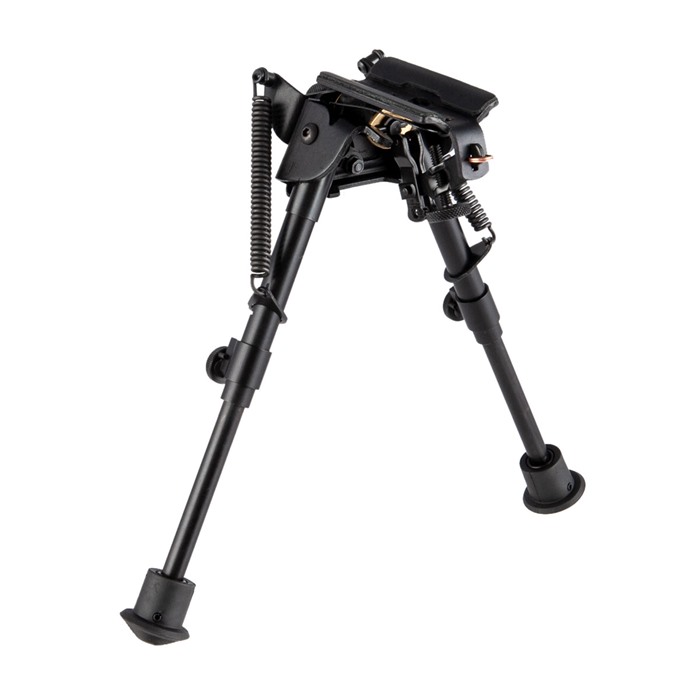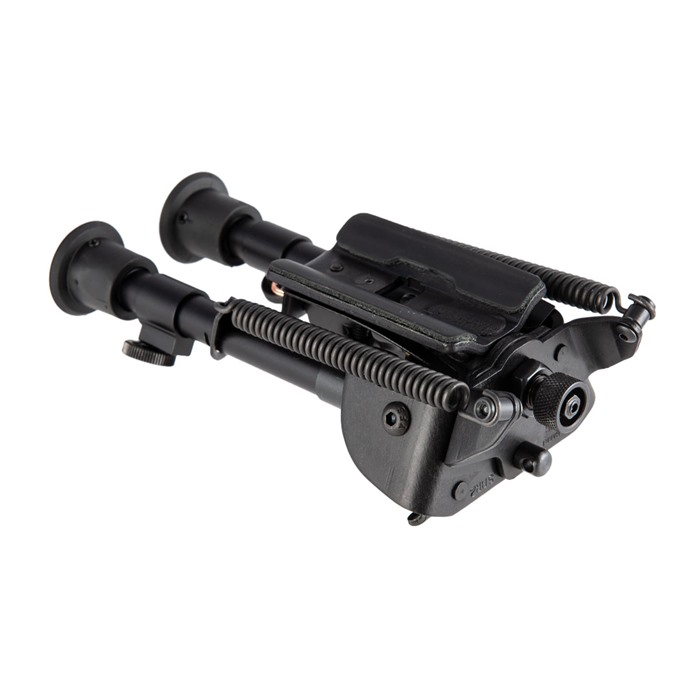 Expanding its line of BR Model Bipods, Harris offers a new option that allows shooters to quickly set their rifle into place on uneven terrain, thanks to a self-leveling mechanism built into the unit. This system also allows shooters to quickly adjust leg height from their shooting position, and a twist of the locking mechanism keeps the bipod locked into place. Despite these changes, the Harris BR Bipod features the same classic S-Series base, allowing the gun to rock from side to side, as well as a 1A2 stationary base. The feet are capped with rubber, and the height is adjustable from 6 to 9 inches.
