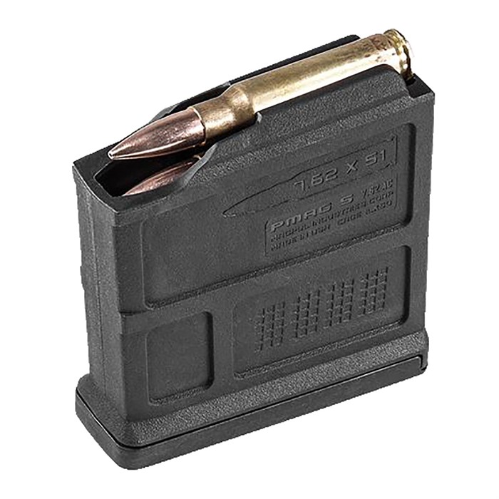 The PMAG 5 7.62 AC and PMAG 10 7.62 AC are a reliable and durable polymer magazine for .308 Winchester-based family of cartridges and is compatible with short action AICS-spec bottom metal, to include the Bolt Action Magazine Well for the Hunter 700 Stock. Compatible with short action AICS-spec bottom metal, to include the Bolt Action Magazine Well for the Hunter 700 Stock, the PMAG 5 and 10 7.62 AC magazines bring additional capacity in an affordable and reliable package. Featuring GEN M3® technology, a paint-pen dot matrix for visual identification, and a flared base plate for positive control and ease of retrieval, the PMAG 10 7.62 AC sets a new standard for bolt action magazines. FEATURES RUGGED POLYMER BODY WITH AN IMPROVED FLOORPLATE Next-generation impact and crush-resistant polymer construction Flared and removable floorplate aids magazine handling and is easy to disassemble for maintenance ADVANCED FOLLOWER Self-lubricating follower for increased reliability Modifiable follower leg can be easily clipped to increase the capacity by one extra cartridge Includes a long-life stainless steel spring EASY IDENTIFICATION Utilize the paint pen dot matrix to easily identify magazines with different loadouts Made in the USA. SPECS Caliber: 7.62x51mm / .308 Winchester Capacity: 5 or 10 Round depending on magazine Compatibility Compatible with short action AICS (Accuracy International Chassis Systems) pattern bottom metal and cartridges built on a 0.470" case head such as 7.62x51/.308 Winchester, 7mm-08 Remington, 6.5mm Creedmoor, .260 Remington, .243 Winchester, and others* *PLEASE NOTE: Not compatible with smaller base diameter cartridges such as .220 Swift, .223 Remington, .300 AAC Blackout, etc. or larger short action magnums. In addition, due to the wide variety and potential combinations of aftermarket receivers, stocks, chassis, and bottom metal that accept AICS pattern mags, minor fitting may be required. Not compatible with Accuracy International AE rifles or semi-auto platforms utilizing SR25/M110 pattern magazines. The Sig Cross rifles ship with a Magpul PMAG 5 7.62 AC that has a proprietary sled follower for optimized single-round loading through the ejection port. The standard PMAG 5 7.62 AC (MAG549) and PMAG 5 7.62 AC (MAG579) are compatible with the Sig Cross, and feeding performance will be the same from the Sig Cross OEM Magpul magazine or the standard Magpul PMAG 7.62 AC magazines. The original PMAG 5 7.62 AC magazine, identified by its green lock plate and follower, was optimized for the .308 Winchester based family of cartridges and is compatible with short action AICS-spec bottom metal, to include the Bolt Action Magazine Well for the Hunter 700 Stock, and performed well with most non-.308 based cartridges in nearly all applications. Some three lug bolt action rifle platforms, such as the Ruger American Rifle®, presented some occasional feeding concerns when used with the standard green follower PMAG 5 7.62 AC magazine. Magpul have made an inline change to a new design of spring and follower. The revised PMAG 5 7.62 AC magazine, easily identified with its brown lock plate and follower, has been optimized to ensure complete Magpul reliability with a broad range of calibers in the Ruger American Rifle® and other 3-lug bolt designs, while maintaining or improving the proven Magpul reliability in Remington® 700 footprint platforms and other 2-lug bolt action designs. For the Hunter American stock, Magpul recommend using only the new, brown follower magazines, in calibers like 6.5 Creedmoor. All other actions, and the Ruger in .308, can use either version interchangeably.