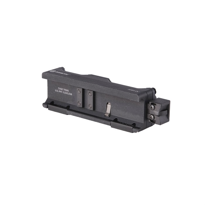 Sidelok is a groundbreaking Quick Detach (QD) mounting system for optics. It eliminates the need for tools, levers, or oversized knobs, offering a simple push button design for securely mounting any optic to a picatinny rail. The system guarantees to maintain zero and ensures continuous return to zero when remounted in the same position as when the optic was zeroed. With an additional safety feature to prevent unintentional movement or detachment of the optic, Sidelok represents the future of optics mounts. The Sidelok Modular ACOG mount offers a slim profile with a slightly raised base to assist with aiming and iron sight clearance. One very unique feature is that the Modular ACOG mount offer 2 different mounting positions to allow for a more forgiving eye relief. In the forward mounting position, the ACOG sits flush with the front of the mount having a similar, but taller, profile to the Trijicon TA51 mount. When the ACOG is mounted in the reward position, the ACOG has a reward cantilever allowing for clearance on most folded flip up iron sights. SPECS: Weight: 4.02 oz Finish: Black Anodized Compatibility: Fits all ACOG models (Excluding 6×48) | 1-8×28 VCOG Models (1-6×24 Not yet Confirmed)