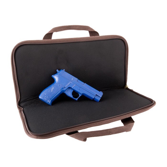 Use as a stand-alone case or for extra protection when carrying your handgun in a range bag with other gear. Large enough for guns with optics, lasers, or tactical lights. Triple protection system includes a tough, Cordura nylon outer shell, dual layer of shock-absorbing foam, and nylon Tricot inner lining. Nylon zipper with brass slide and pull keeps the case sealed; a brass D-ring lets you lock the case (padlock not included). Nylon-web carry strap completes the package. Standard is just the right size for small and mid-size pistols and revolvers. Magnum is built extra large to fit those long barreled, large magnum revolvers and pistols. Deluxe Magnum has an external, zippered pocket ideal for storing extra ammunition, cleaning supplies, shooting glasses, hearing protection or other gear.