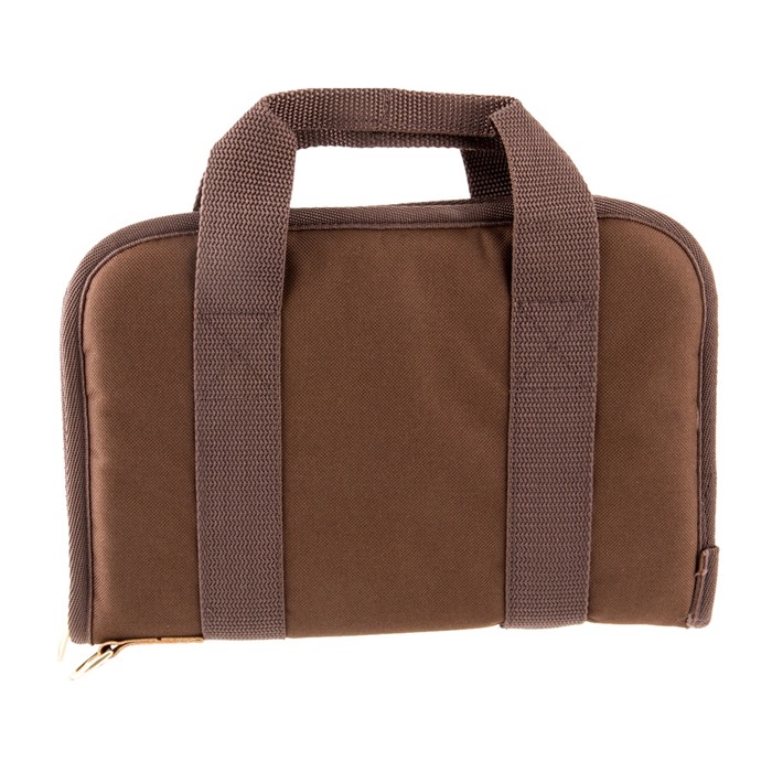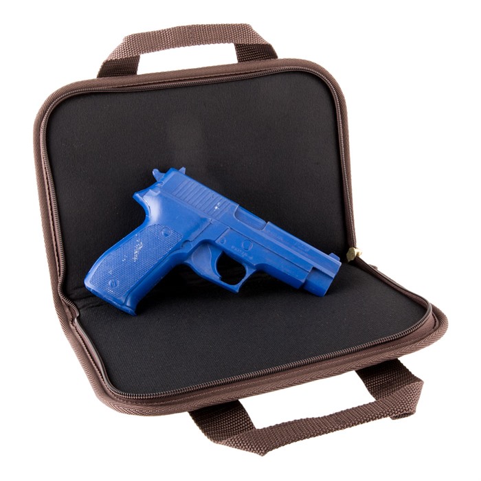 Use as a stand-alone case or for extra protection when carrying your handgun in a range bag with other gear. Large enough for guns with optics, lasers, or tactical lights. Triple protection system includes a tough, Cordura nylon outer shell, dual layer of shock-absorbing foam, and nylon Tricot inner lining. Nylon zipper with brass slide and pull keeps the case sealed; a brass D-ring lets you lock the case (padlock not included). Nylon-web carry strap completes the package. Standard is just the right size for small and mid-size pistols and revolvers. Magnum is built extra large to fit those long barreled, large magnum revolvers and pistols. Deluxe Magnum has an external, zippered pocket ideal for storing extra ammunition, cleaning supplies, shooting glasses, hearing protection or other gear.