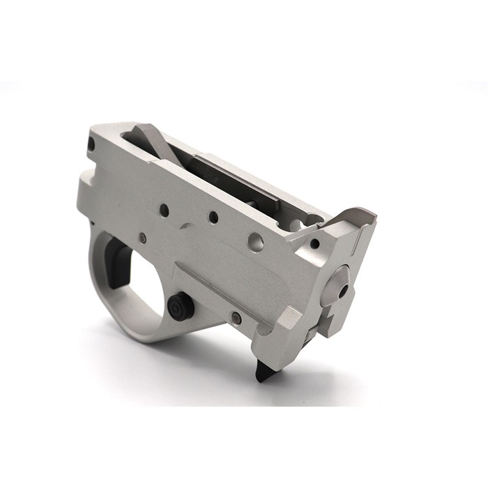 Este gatillo aftermarket para el 10/22 está diseñado para ajustarse de 1 ½ libras a 5 libras con solo girar un tornillo. Viene de serie en un acabado mate y libre de reflejos, en aluminio anodizado plateado o negro, con nuestro rediseñado sistema de liberación automática del cerrojo y un sistema de palanca de cargador intercambiable.