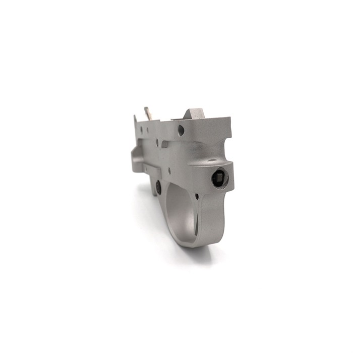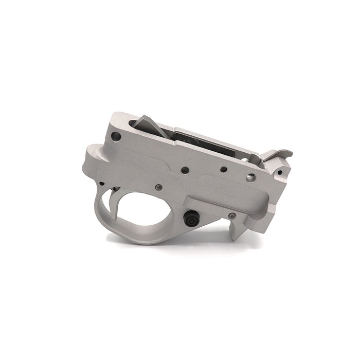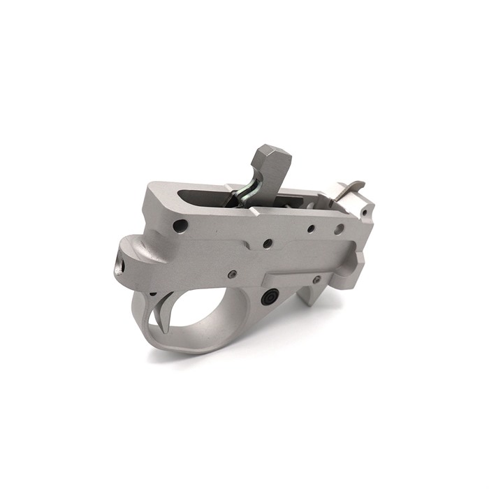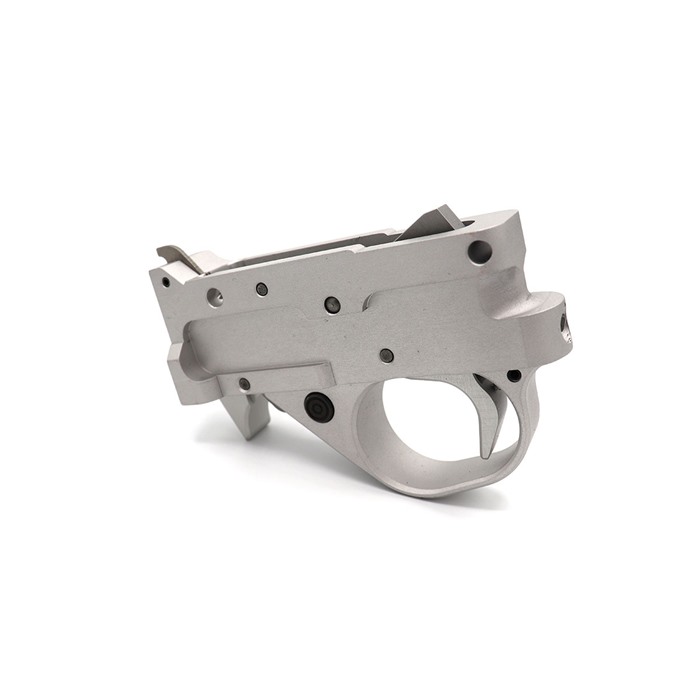 Experience the premium manufacturing of Kidd Innovative Design's Single Stage Trigger Unit. This quick upgrade will give you a superior break without any needed gunsmithing to install. This aftermarket 10/22 trigger is designed to adjust from 1 1/2 pounds to 5 pounds with the turn of a screw. It comes standard in a matte glare free finish silver or black anodized aluminum with our redesigned auto bolt release and interchangeable magazine lever system. The KIDD single stage trigger guard is CNC machined from billet to Tony's specifications. Always following the KIDD Quality of closely held tolerances enabling the cleanest breaking single stage in the industry. How is this different from our two stages? This single stage more closely matched the traditional function of the factory trigger except with a refined feel and adjustability. The KIDD two stage has a travel stage where the trigger blade moves rearward for about a 1/4 of an inch before it comes to the breaking stage. Because of this travel stage our two-stage trigger is able to be reduced in weight to only 6 ounces versus the lowest weight for our single stage is 1 1/2 pounds. FEATURES: Aftermarket Replacement Trigger Unit for the 10/22 Easy Upgrade Improve your Accuracy with a Great Breaking Trigger Great new look!