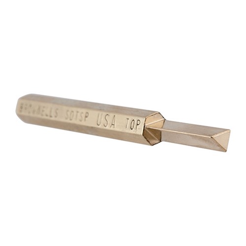 El Punch de Mira Dovetail Pequeño de Brownells está diseñado para facilitar la instalación, remoción y ajuste de las miras pequeñas en pistolas, tanto delanteras como traseras.