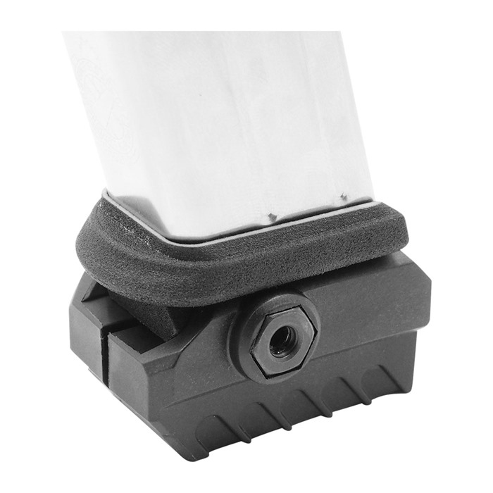 Un adaptador de riel Picatinny que se adhiere a la parte inferior de una placa de fondo de cargador existente. Es preferido si no tienes una funda que acomode luces y deseas entrenar con extracciones de funda.