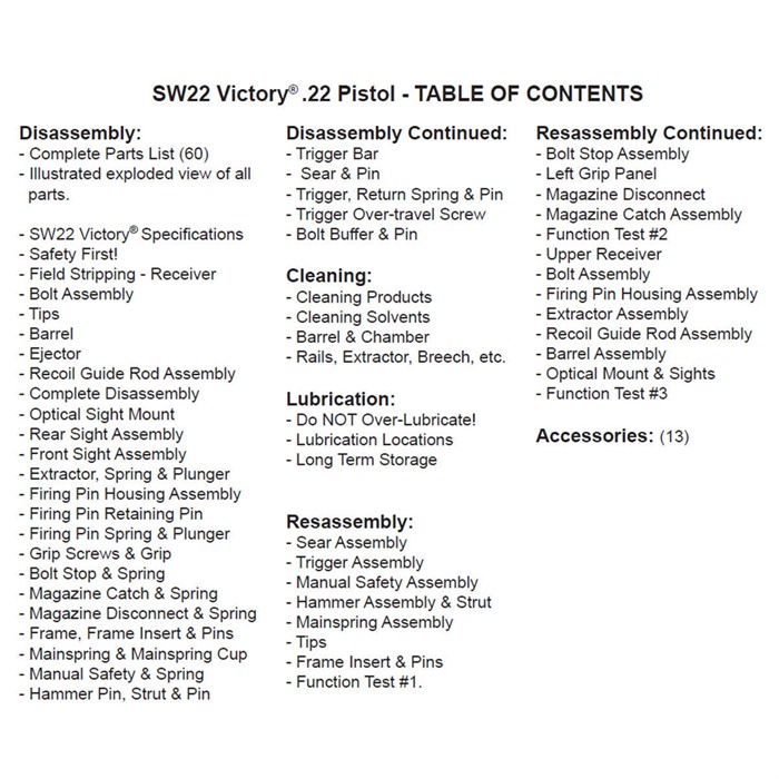 - Sigue la Guía: Consulta la Guía de Ensamblaje y Desensamblaje de la Smith & Wesson SW22 Victory para obtener instrucciones de ensamblaje paso a paso.